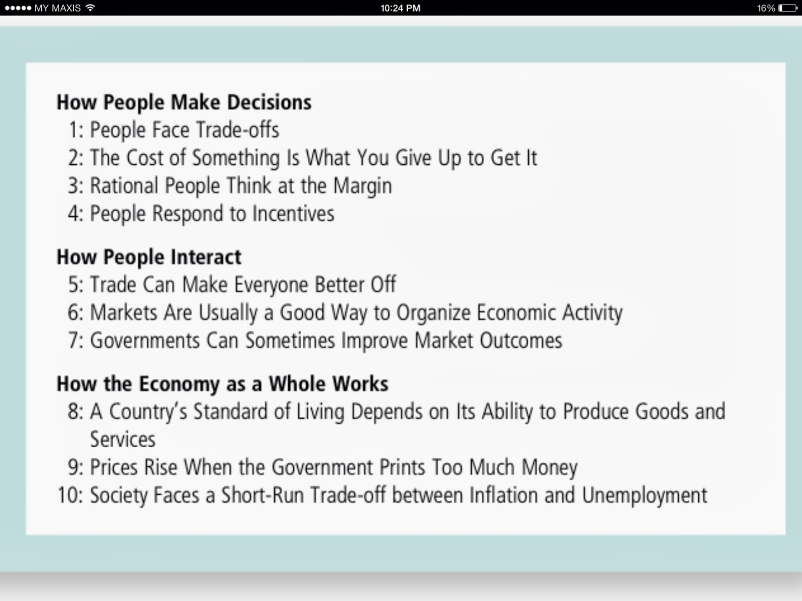 Mankiw, N. Gregory. 2012. Principles of Economics, 6Ed. South-Western Cengage Learning. Pg 18. Available from www.cengage.com.