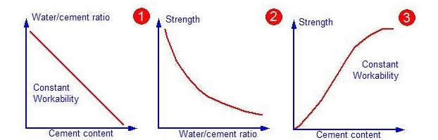 The influence of cement content on workability and strength is an important one to remember and can be summarized as follows:
