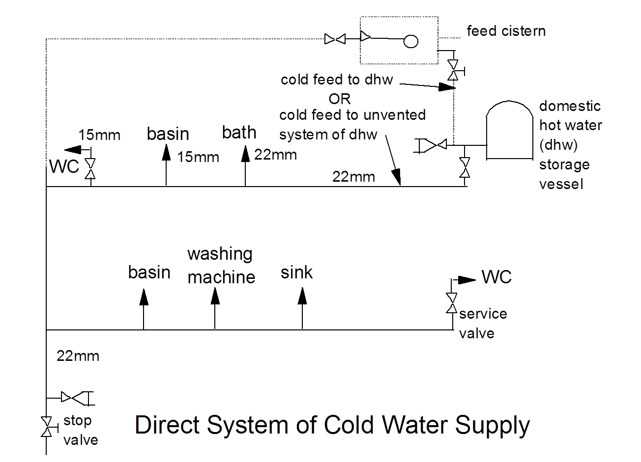 Differences, Advantages Direct v Indirect Cold Water Supply System. See posting earlier on Indirect, Direct, Hot or Cold Water Supply here.