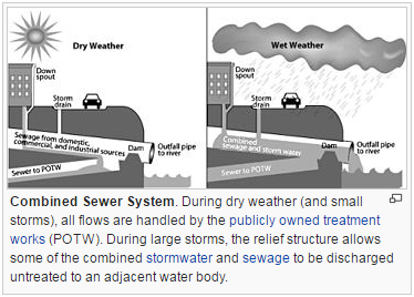 Hence, the combined underground sewerage system is of higher risk of contamination when stormy drain overflow during heavy downpour. This is because the mixture of waste (including human waste) with the surface over run of water during rain fall can backflow during stormy seasons as the drainage cannot cope with the volume of water.