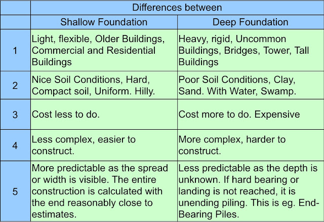 a) List five (5) differences between shallow and deep foundation. (10 marks)