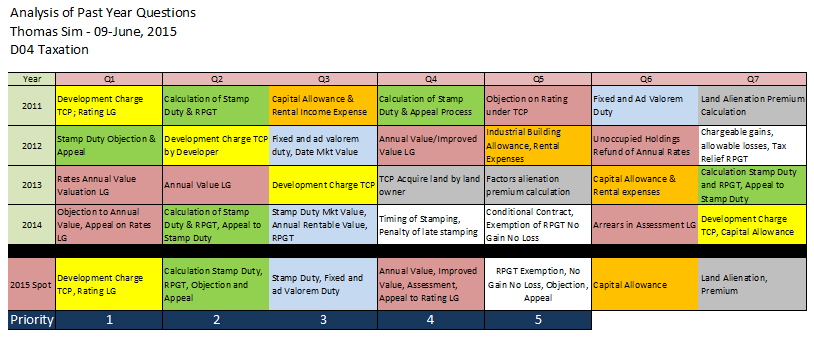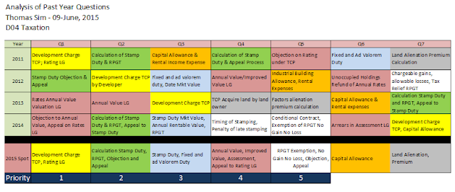 When you prepare for D04 Property Taxation, you would want to do the smart approach. Like in D02 Law, you would prepare the topic which has more questions as options. In D02 Law, obviously that is Contract which has a potential 2 questions. Indeed, it is a better bet than say Arbitration, which will be 1 question.