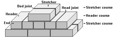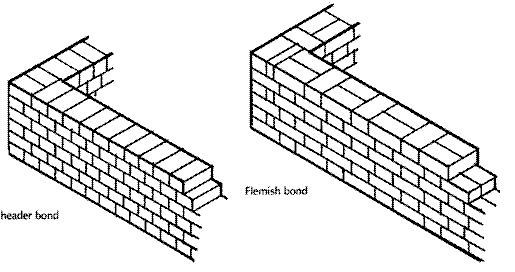 (b) Using diagrams differentiate the following types of brick bonding:-