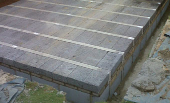 For greater strength the rows can be laid closer together with the blocks instead laid sideways. The floor surface is then stabilised by grouting with a weak sand/cement mix brushed into the joints.